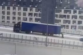 Видео: гаишник голыми руками передвигал фуру в Подмосковье