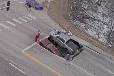 «Эпично»: на видео попало, как машины с американцами провалились под землю