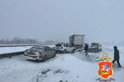 На трассе М-4 «Дон» из-за снегопада столкнулись 12 автомобилей