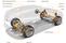 Разумеется, в основе всё та же платформа CLAR с продольным расположением силового агрегата и основным задним приводом. Официальные спикеры концерна говорят о новой конструкции подвесок с изменённой кинематикой, но по иллюстрациям видно: подрамники если и изменились, то этого не заметно; а схема подвесок осталась точно такой же (хотя в нюансах они наверняка отличаются). Спереди используются стойки Макферсон с двумя рычагами на колесо, сзади — пятирычажная схема.