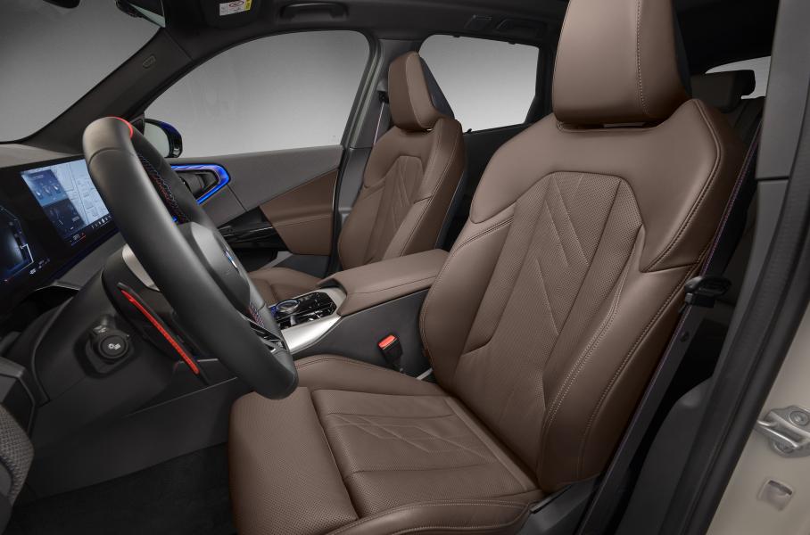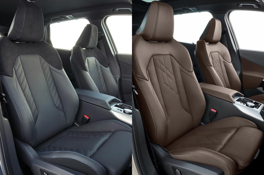 В базе новый BMW X3 оснащен спортивными креслами с отделкой кожзамом, с электроприводом и подогревом. За доплату — отделка салона кожей Veganza или Merino, а также покрытие передней панели и верха дверей из высококачественного вторсырья.