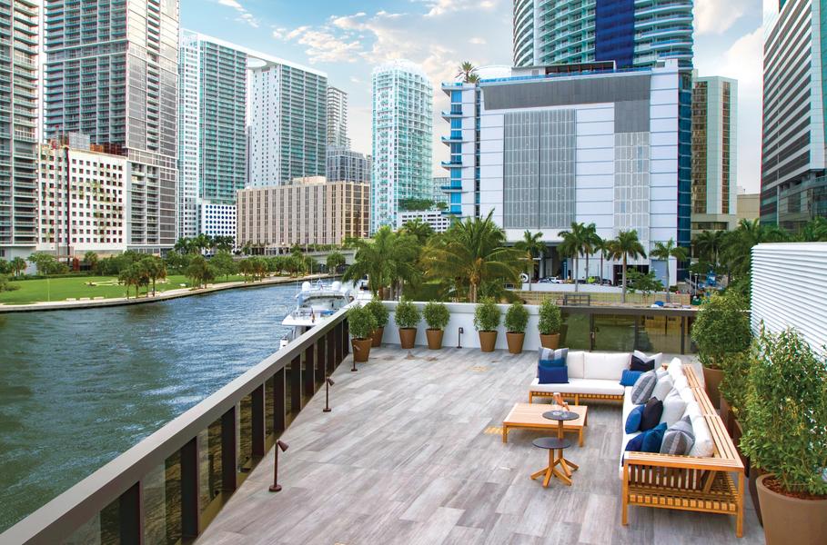 Эти пространства называются Sky Amenities. Согласно проектной документации они будут находиться на территории торгово-развлекательной зоны между 52 и 55 этажами. Туда войдут двухуровневый фитнес-центр с видом на океан и залив Бискейн, боксёрский зал, виртуальное поле для гольфа, художественная галерея, два кинотеатра, многопрофильный спа-центр, салон красоты и парикмахерская. Команда Рейхмана разработает для них дизайнерские элементы: например, фирменные дверные ручки и кожаные петли для газет. Кроме того, для двух лобби дизайнеры спроектируют уникальные столы из углеволокна.