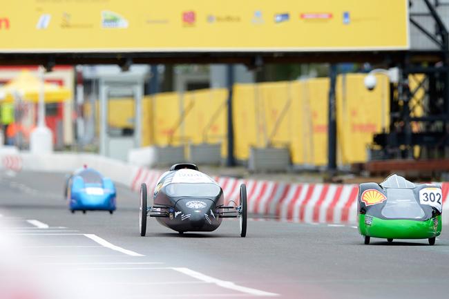 Техинспекция продлится весь первый соревновательный день, и чтобы не сойти с ума от бесконечного вида механизмов и пластиковых бутылок, можно потихоньку сбежать на трек – не самую простую, кочковатую 1626-метровую круговую трассу, проложенную по опоясывающей выставочный центр городской улице. Все участники выезжают на нее в порядке очереди. В первый день соревнований выступают только прототипы, во второй – только городские концепты.