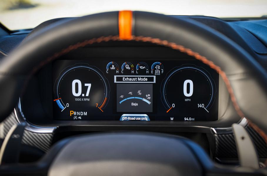 Электроника позволяет выбирать между семью режимами движения, среди которых – предустановки для скользкого покрытия, бездорожья и гористой местности, а также для спортивной езды. Кроме этого, Raptor оснастили активной выхлопной системой с «тромбонной петлей» (выравнивает длину правой и левой частей выпускной магистрали) и четырьмя режимами, определяющими громкость выхлопа: Quiet, Normal, Sport и Baja.