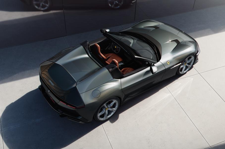 Родстер 12Cilindri Spider, представленный одновременно с купе, чуточку медленнее: 0−100 — 2,95 секунды, 0—200 — 8,2.