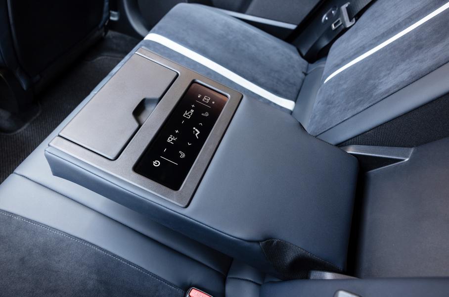 Спинка заднего дивана разделена на две части в соотношении 60:40, их угол наклонка меняется электроприводом независимо