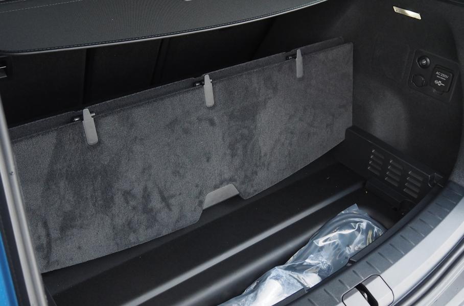 Наклон спинки заднего дивана регулируется электроприводом (она разделена на две неравные части в соотношении 40:60). Но вот продольной регулировки не предусмотрено... А жаль: это могло бы отчасти компенсировать скромные размеры багажника — его объём составляет всего 476 литров. Вроде бы и достаточно, но у аналогов заметно больше пространство для грузов: например, у более компактной Шкоды Eniaq багажник на 585 литров. Из хорошего — спинка дивана складывается вровень с полом багажника, предусмотрен лючок для лыж, такелажные петли, удобная шторка и вместительное «подполье» для зарядного кабеля.