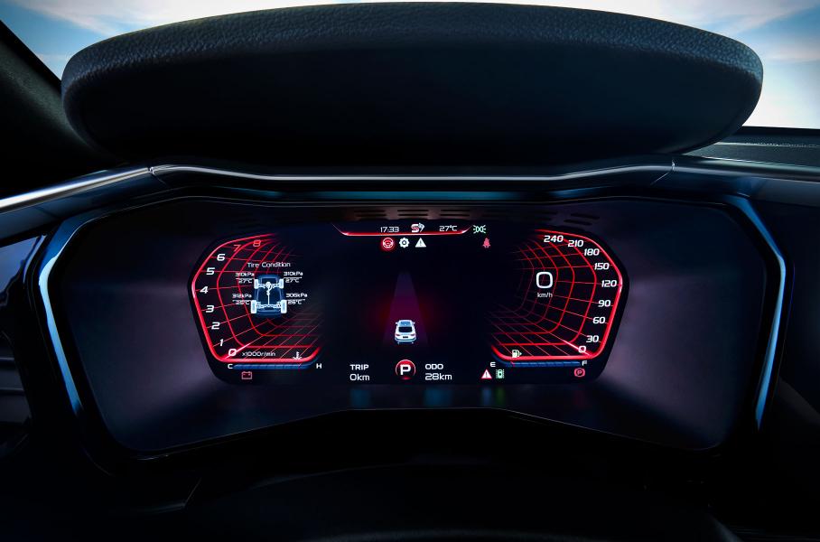 В салоне — цифровая приборная панель диагональю 12,3 дюйма и экран мультимедийной системы того же размера, атмосферная подсветка, аудиосистема с восемью динамиками, а на центральном тоннеле размещена шайба для переключения режимов движения. Их всего пять: Normal, Eco, Sport, Snow и Off-Road.