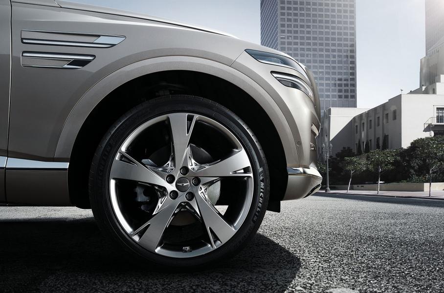 Genesis GV80 стал первым автомобилем, в основу которого с самого начала лёг новый дизайнерский язык марки — «Атлетическая элегантность». Его отличительные черты — это пятиугольный щит радиаторной решетки с ромбическими ячейками и рассечённые пополам по горизонтали фары (эта линия продолжается хромированными накладками на бортах и разделёнными задними фонарями). Эти же элементы дизайнеры Genesis в ходе рестайлинга довольно удачно внедрили в представительский седан G90.