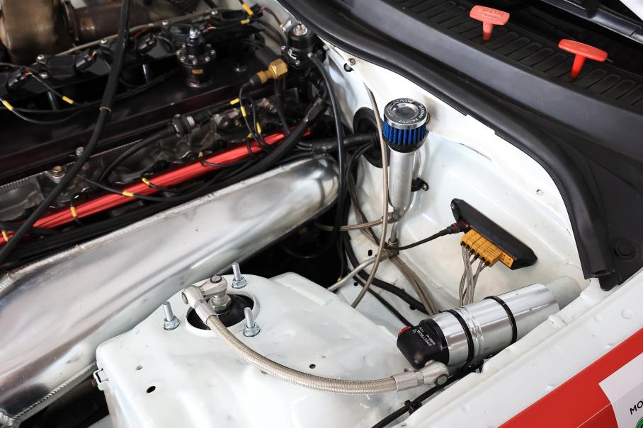 Теперь о системе смазки двигателя. Дрифт-кар испытывает невероятные нагрузки и проходит повороты на высокой скорости, да еще и с постоянными перекладками, поэтому используется система сухого картера, моторное масло Sintec и вакуумный регулятор Peterson. При этом масло меняется после каждого этапа, а это сет из двух дней тренировок, квалификации и парных заездов.