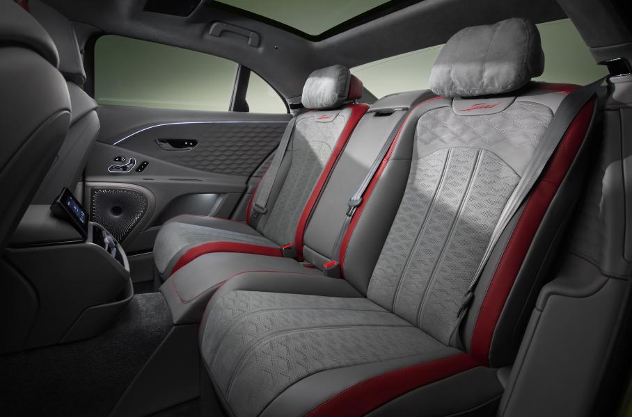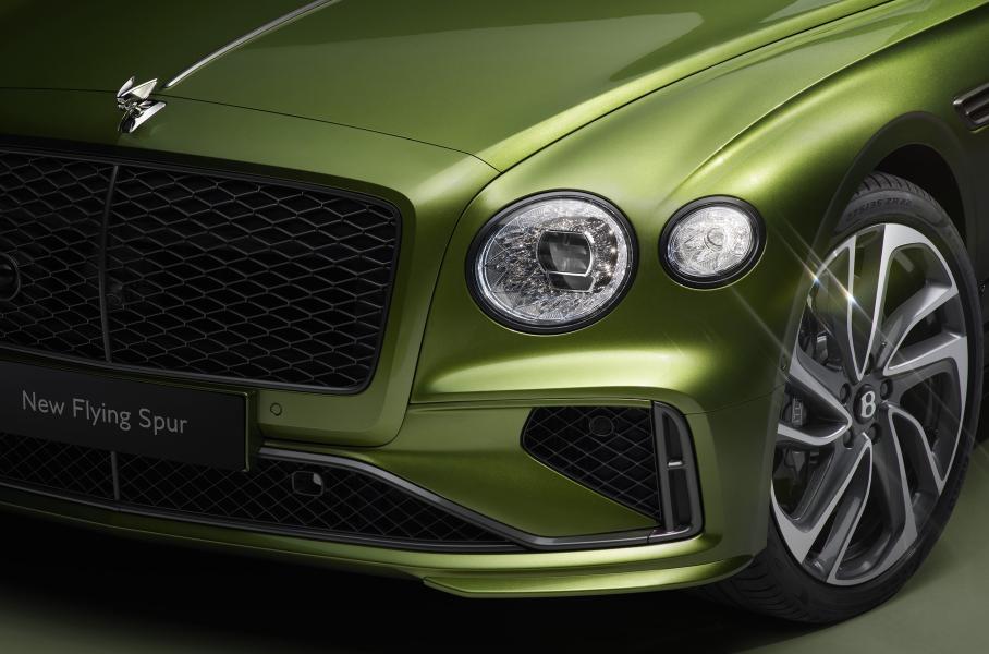 Внешне новый Bentley Flying Spur можно опознать по слегка затемненному декору, другому рисунку решетки радиатора, измененным бамперам и пакету Styling Specification, который теперь можно заказать в цвете кузова либо оставить в видимом углеволокне.