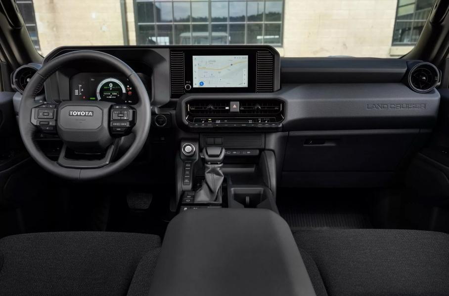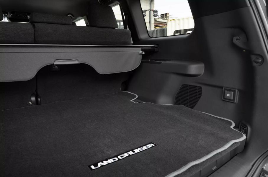 Внутри Toyota Land Cruiser Prado нарочито скромный. В базовой версии у внедорожника медиасистема с 8-дюймовым тачскрином и шестью динамиками, тканевый салон, механические регулировки кресел, простой чёрный пластик и только пять мест. Из «бесплатных» опций — подогрев руля и передних кресел, беспроводная зарядка для гаджетов и инвертор переменного тока на 2400 Ватт.