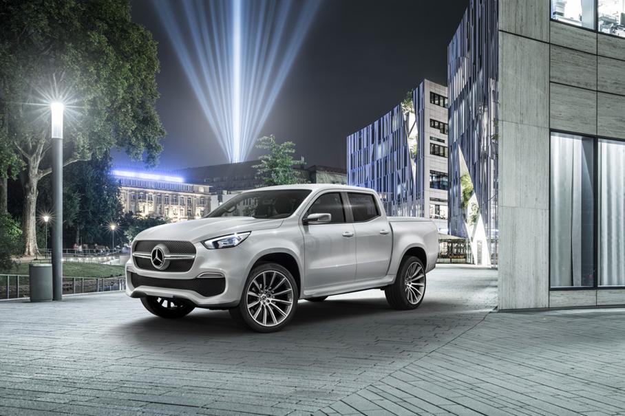 На мероприятии в шведском Стокгольме, куда, кажется, приехали представители всех стран (континентов уж точно), Mercedes-Benz показал две концептуальные версии пикапа X-класса. Первой на сцену выехала модификация powerful adventurer с огромными внедорожными колесами, двумя лебедками, защитным обвесом из карбона (да, из карбона) и огнетушителем перед пассажирским креслом.