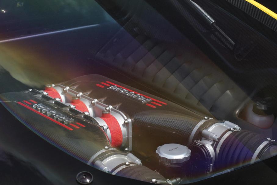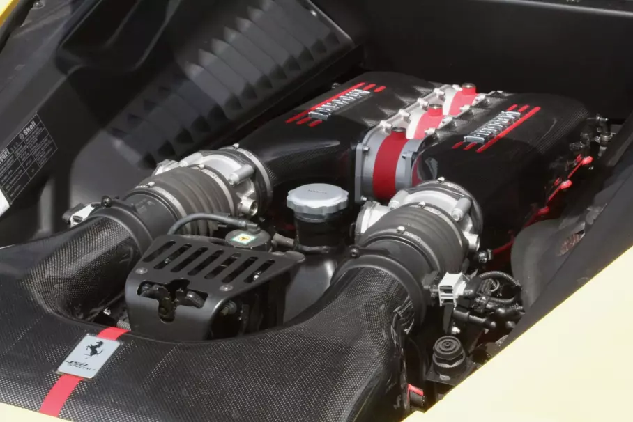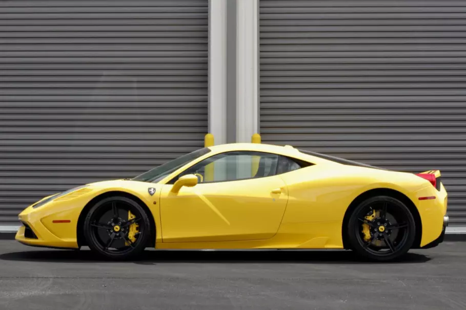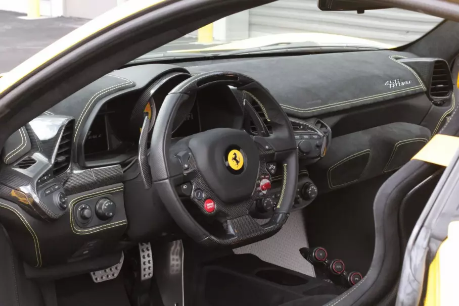 Коробка передач — 7-ступенчатый робот Getrag с двойным сцеплением. На площадке Bring a Trailer в продаже появился спорткар 2014 года с пробегом менее 2000 километров. Суперкар окрашен в жёлтый цвет Giallo Modena с отделанным чёрной алькантарой Nero Alcantara с жёлтой прострочкой салоном.