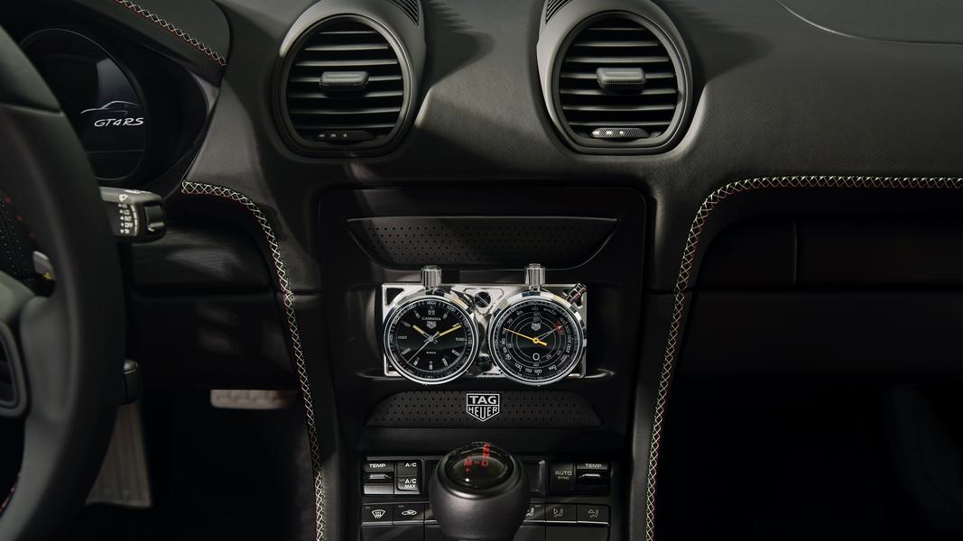 Особенностью автомобиля 154 является модуль с часами TAG Heuer на центральной консоли — этот компонент был разработан и изготовлен специально для проекта и его нельзя купить отдельно. Левые часы, отображающие время, имеют классический дизайн модели Carrera. Рядом с механическими часами с тремя стрелками с запасом хода восемь дней расположен секундомер со шкалой, который помогает водителю поддерживать среднюю скорость, часто предписанную для ралли.