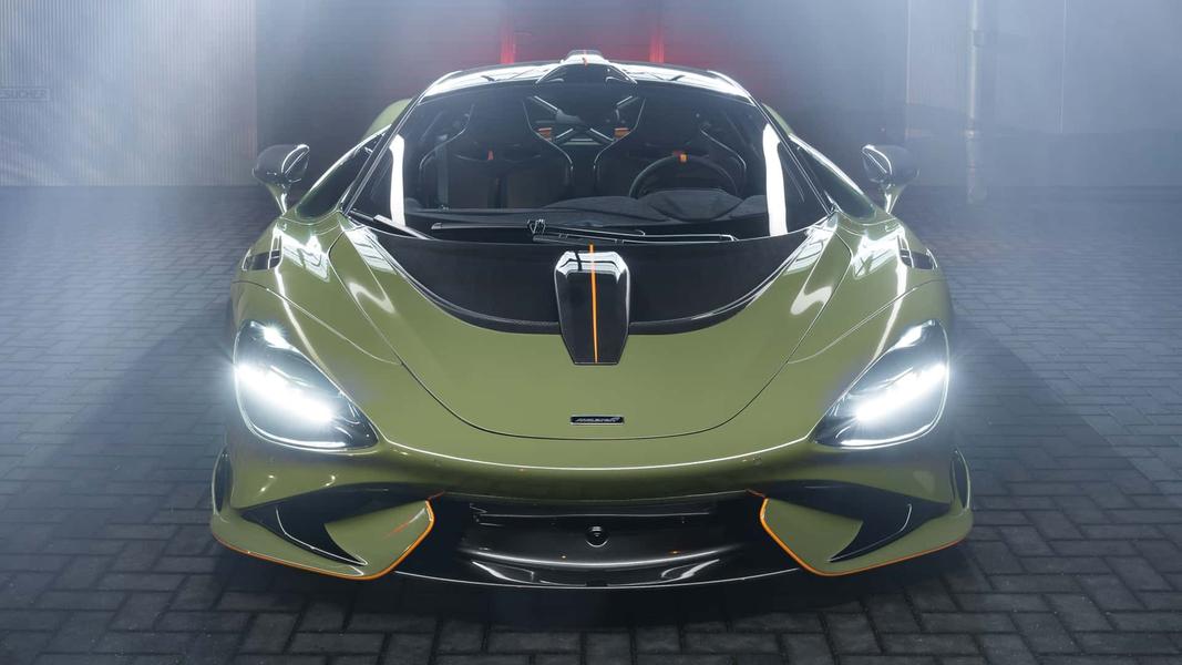 У McLaren 765LT, напомним, 765-сильный битурбомотор V8 4.0 с перенастроенным семиступенчатым «роботом» и модернизированной подвеской, а также удлиненный кузов с улучшенной аэродинамикой за счет увеличенного диффузора, доработанного активного заднего антикрыла и нового обвеса, а также тормозная система от McLaren Senna и новые колёсные диски с титановыми болтами.