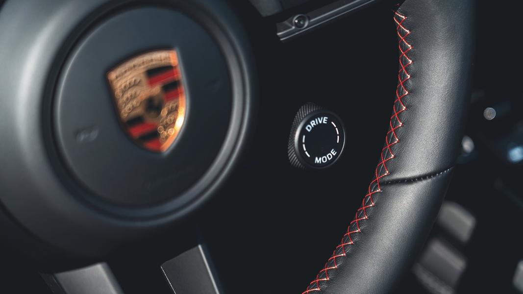 Основные перемены касаются стиля. Кабриолет получил черный кожаный салон с прострочкой нитью цветов Guards Red и Pebble Grey, ремни безопасности красного цвета Guards, а также циферблат приборов и циферблат тахометра белого цвета. На центральном подлокотнике тиснением сделан логотип спецверсии, а на порогах появились накладки с подсветкой.