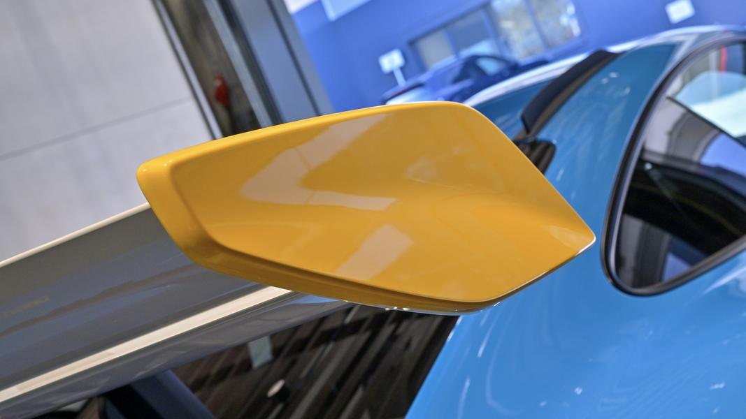 Бергмайстер заказал машину без карбонового обвеса Weissach Package, чтобы окрасить автомобиль целиком в голубой оттенок Rivierablue, который несли все гоночные машины пилота в начале его спортивной карьеры. Особый оттенок цвета создавали по программе Paint to Sample, а чтобы соответствовать ливрее победоносного купе поколения 996 кузов дополнили контрастными элементами цвета Racing Yellow. Заднее крыло окрашено в белый цвет с торцевыми пластинами цвета Racing Yellow, на нижней стороне крыла расположен герб Porsche, а название модели — на задней панели кузова.