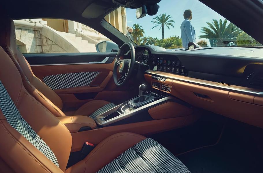 Как и предшественник, спорткар в кузове 992 сохранит узнаваемый силуэт со вздёрнутым спойлером в стиле Carrera RS 2.7. Модель скоро отпразднует свое 50-летие, и новый Sport Classic как нельзя лучше подходит на роль подарка. Купе покрасят в серый колер Sport Classic Grey, украсят «гоночными» полосами и ронделями. Также можно заметить, что у новинки иначе сделаны крыша и капот, стоят колеса Fuchs, а салон обит коричневой кожей и текстилем с узором «хаундстут».