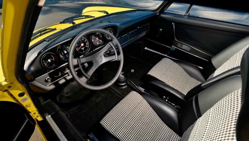 Чёрный салон, восстановленный Autobahn Interiors из Сан-Диего, отличается спортивными ковшеобразными сиденьями с чёрно-белыми вставками Pepita Houndstooth. Поскольку автомобиль позиционировался как омологационная версия гоночной модели, оснащение у машины аскетичное.