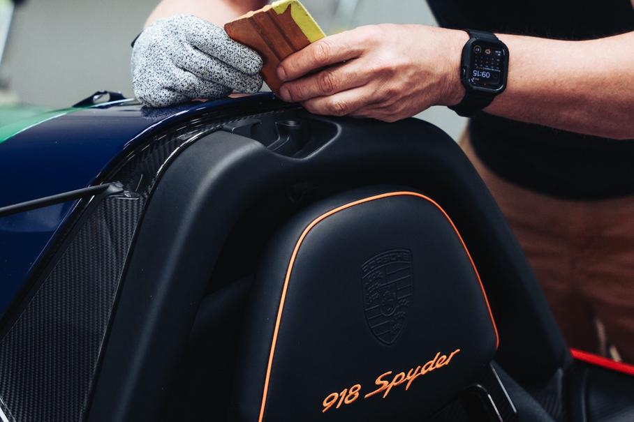 Автомобиль сделали в честь линейки HarlequinОбладатель Porsche 918 Spyder Weissach Package обратился в ателье Next Level Cars с просьбой превратить его суперкар в заводском серебристом цвете кузова в четырёхцветный вариант. Перекрашивать редкий автомобиль не стали, а воспользовались вместо этого виниловой плёнкой.