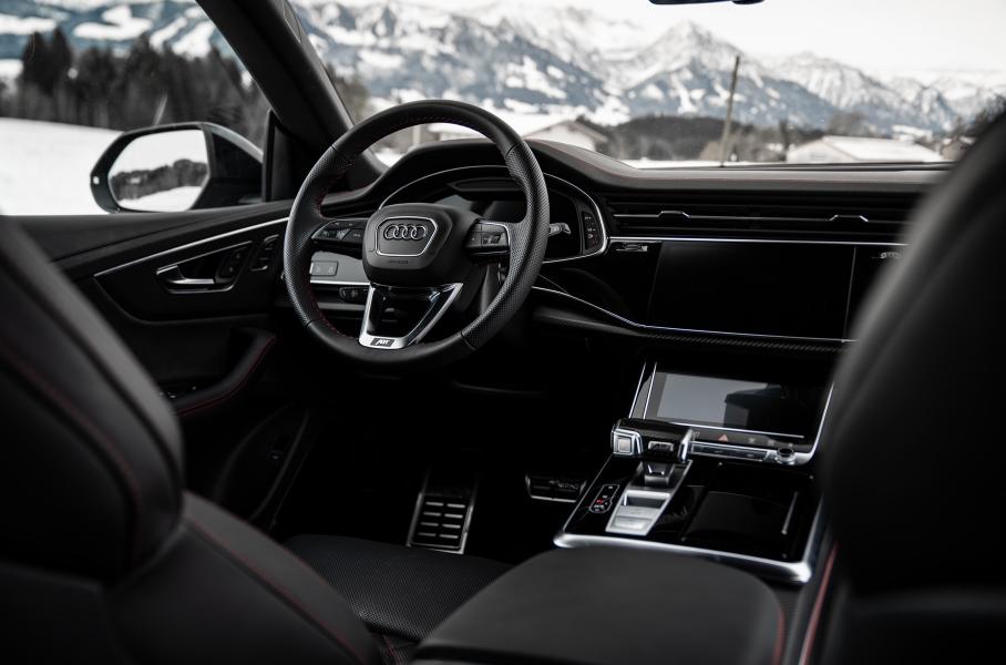 Благодаря блоку управления ABT Power R и интеркулеру мощность «восьмерки» увеличена до 700 сил и 870 Нм. Занижением дорожного просвета в стандартных режимах заведует контроллер ABT Level Control, но при этом свою функциональность сохраняют и лифт, и профиль Offroad. С настройками Comfort кроссовер от ABT будет ниже обычного на 25 миллиметров, Dynamic — ещё на 15. На дополнительные 10 миллиметров машина приседает при выборе Coffee Mode, работающего на скоростях до 5 километров в час.