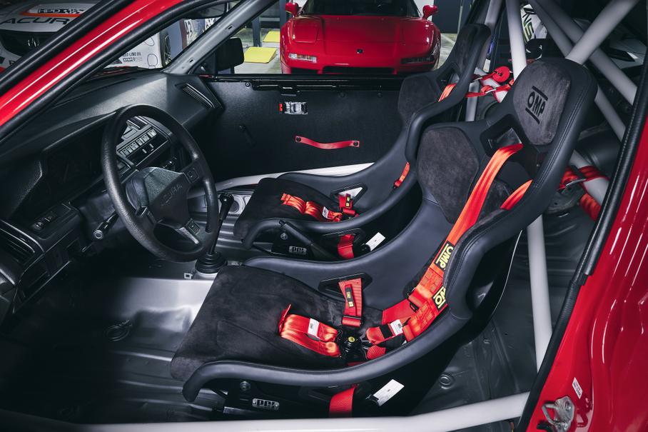 В салоне — каркас безопасности от Blackbird Fabworx, пара кресел OMP с шеститочечными ремнями. При этом оригинальная панель приборов сохранена. Кузов перекрашен в цвет Rio Red Metallic — именно в такой цвет был окрашен оригинальный болид под номером 48, построенный командой Comptech. Тот самый, который выигрывал чемпионат IMSA International Sedan Series в 1987—1990 годах.