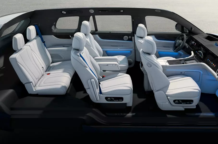 Салон кроссовера рассчитан на шестерых. Передние сиденья складные, так что при желании M9 можно превратить в дом на колесах. Сзади стоят кресла Zero Gravity 2.0 с адаптивными подлокотниками. Для мелких вещей предусмотрен аж 41 отсек, при том есть как ящички для бутылок, так и углубления под планшеты и ультрабуки. Не забыли в AITO и о конфиденциальности, поэтому добавил в машину «Режим полета». При его активации блокируется любая передача данных вовне, отключаются Wi-Fi, Bluetooth и противоугонная система.
