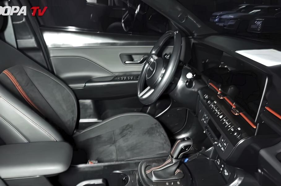 Теперь же внешний вид Kona N Line можно рассмотреть более пристально. На видео, опубликованном Woopa TV, у кроссовера двухцветный кузов с белыми накладками на арках и порогах, сочетающимися с серыми дверями, стойками, капотом и крышей. В салоне – единый кластер с двумя дисплеями диагональю 12,3 дюйма. Стоит отметить, что у электрической Kona иное расположение селектора трансмиссии – он вынесен на рулевую колонку, в то время как у кроссовер с ДВС он находится на центральном тоннеле.