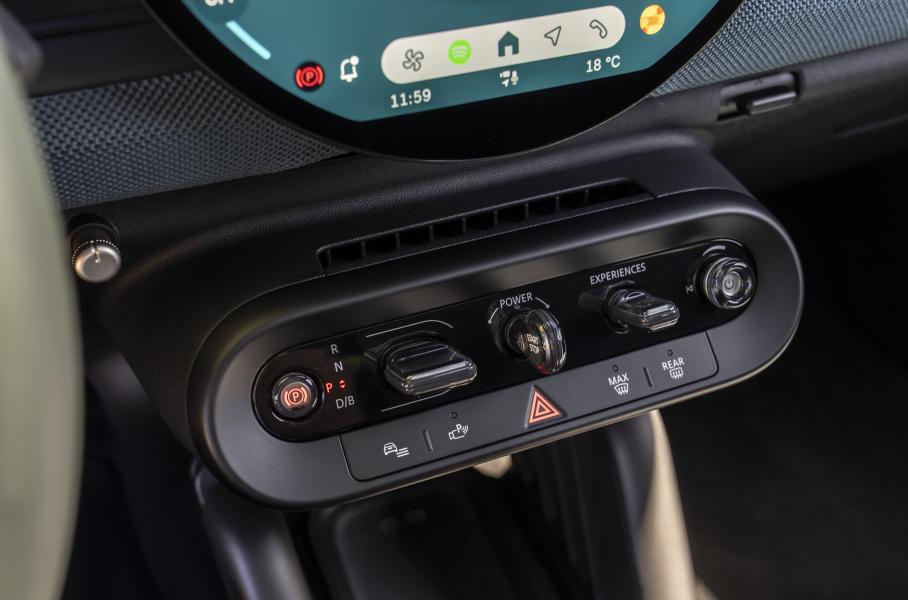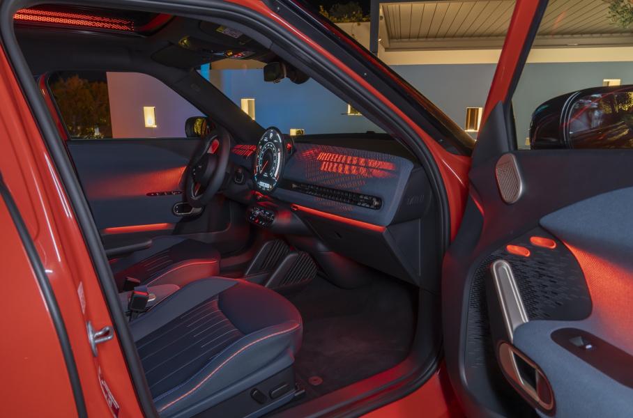 На передней панели Aceman размещена круглая OLED-«тарелка» диаметром 240 миллиметров. Мультимедиа работает под управлением MINI Operating System 9 и впервые оснащена полноценным голосовым помощником. Он может обучаться на ежедневных диалогах и выполнять рутинные задачи. Как и на Cooper, тут также есть переключатель режимов MINI Experience со световой проекцией на переднюю панель и восемью предустановленными профилями. На выбор будут предложены четыре уровня оснащения: Essential, Classic, Favoured и спортивный JCW.