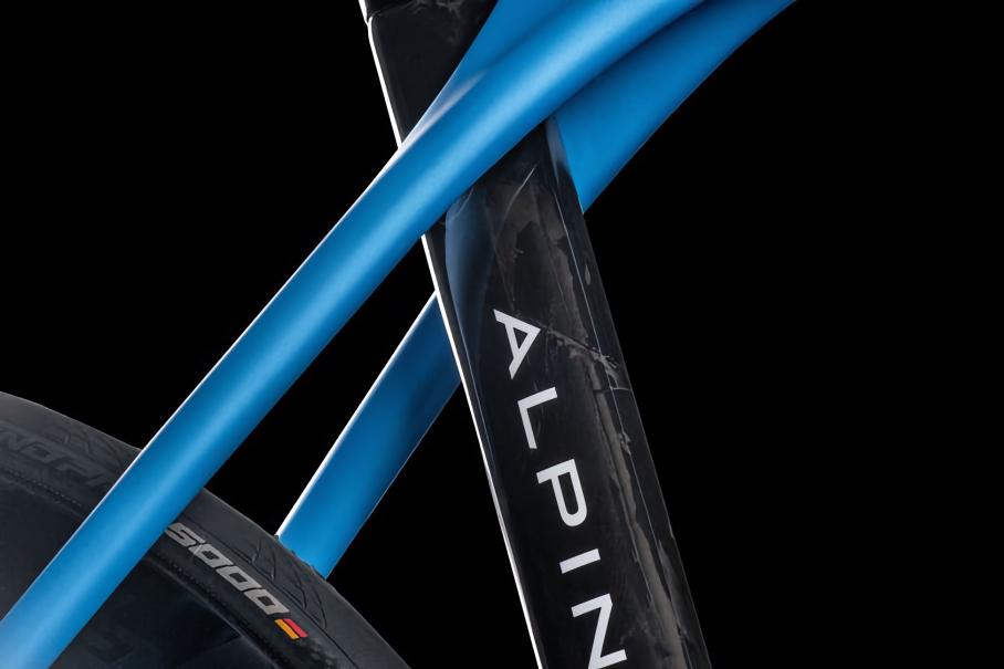 Сюда входят групсет Dura-Ace Di2 с беспроводным переключением передач, тормоза RTMT900 и каретка Pressfit SMBB7241B. Колеса — карбоновые Lapierre с шинами Continental GP5000S. Рама велосипеда оформлена в стиле Alpine A110 R: основной цвет — синий Matte Racing Blue; логотипы, подседельная труба и часть нижней трубы выполнены в черном Deep Black.