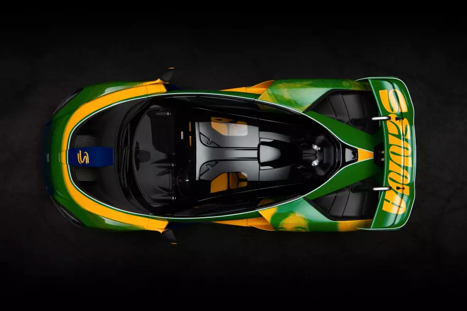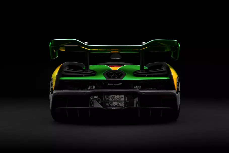 На панелях, закрывающих большие воздухозаборники по бокам автомобиля, специалисты по покраске MSO нанесли два разных изображения Айртона Сенны с эффектом точечной матрицы. Яркую глянцевую окраску кузова дополняют панели из углеродного волокна. Салон отделан эксклюзивной обивкой из жёлтой алькантары с зелёной перфорацией, а на руле появилась белая «нулевая» отметка.