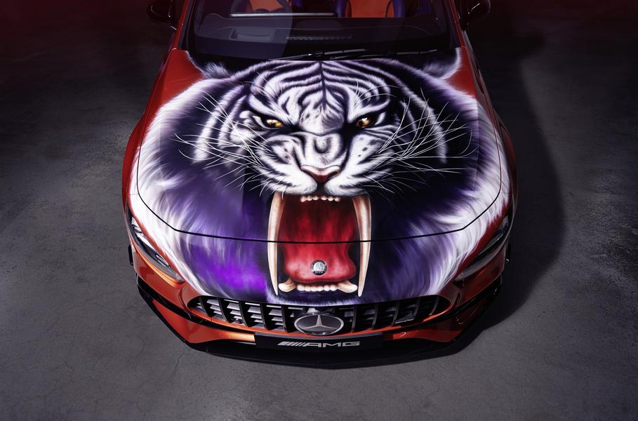 Например, Mercedes‑AMG A 45 S Palace Edition символизирует лондонскую кастом-сцену между 60-ми и 80-ми годами прошлого века. На капоте хэтчбека — крупная голова тигра с разинутой пастью. На боковинах кузова — гипертрофированные логотипы Palace. Родстер SL 63 — это уже аллюзия на вечное калифорнийское лето. И даже цвета подобраны соответствующие: ярко-желтый и насыщенный красный.
