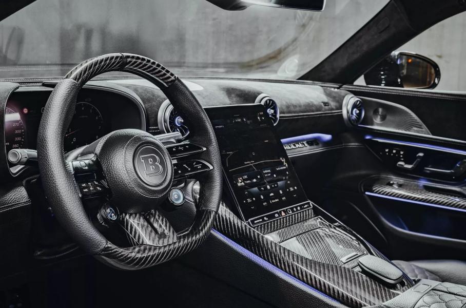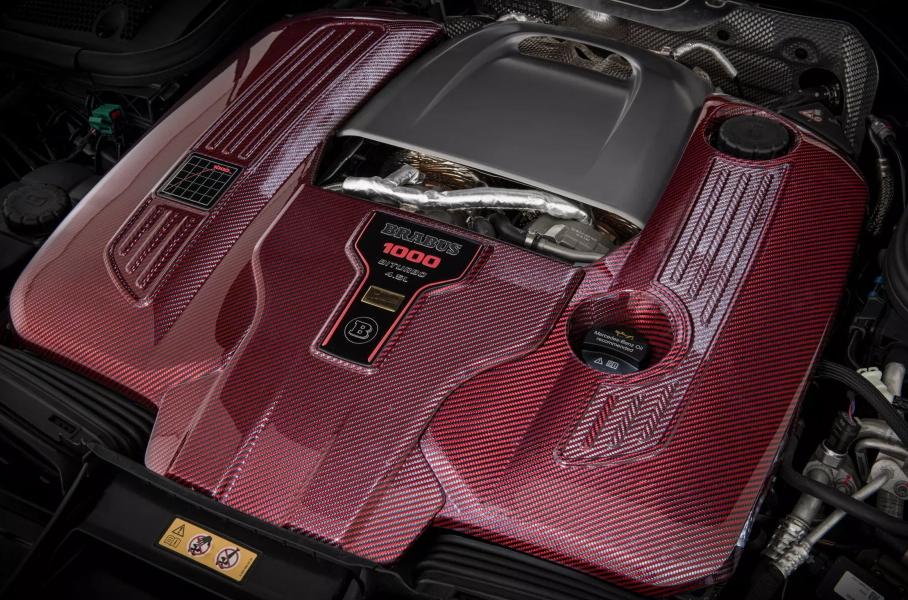Brabus превратил трёхдверку в самый практичный AMG SL, что доказывает вместимость багажника. Но куда интереснее показатели силовой установки: пиковая отдача составляет 1000 лошадиных сил и 1820 Нм, причём крутящий момент ограничен 1620 Нм ради ресурса трансмиссии. Электросистема штатная, а вот мотор V8 расточен с 4,0 до 4,4 литра, заменены турбонагнетатели, впуск и выпуск.