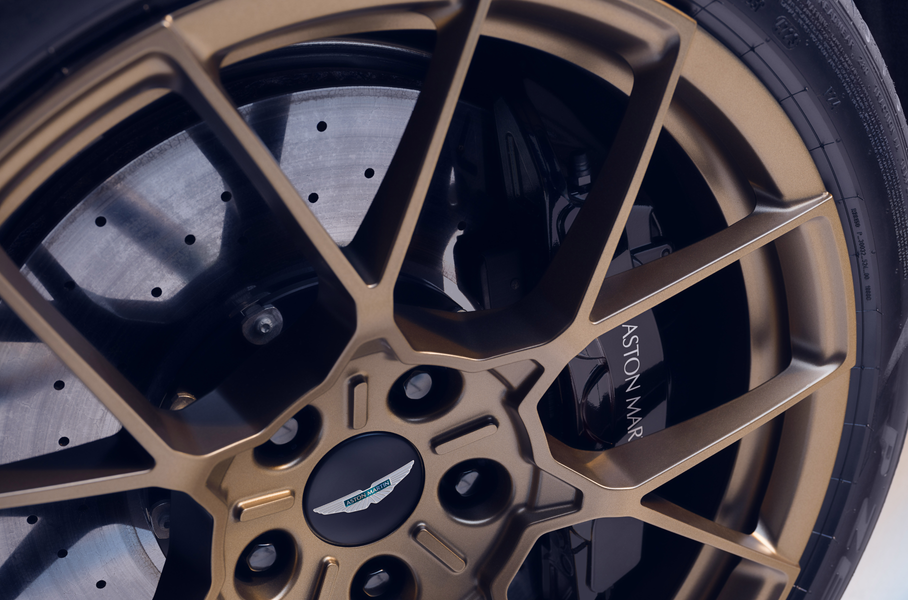 Флагман по умолчанию оснащен системой углеродно-керамических тормозов с 410-миллиметровыми дисками спереди и 360-миллиметровыми сзади. Она работает эффективнее, чем на других Aston Martin, и лучше переносит нагрев до 800 градусов Цельсия.