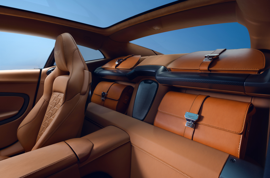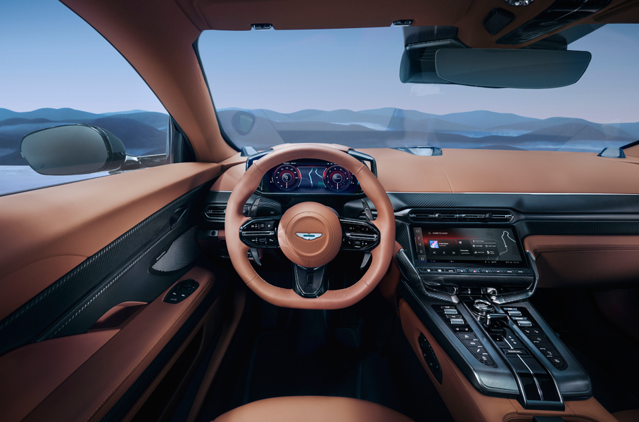 Двухместный салон с обивкой из алькантары и полуанилиновой кожи на выбор напоминает оный у Vantage и DB12. В оснащении — 10,25-дюймовая цифровая «приборка» и экран мультимедийной системы такого же размера. Акцент сделан на водительском месте, где можно установить сиденье Performance из углеродного волокна с низкой посадкой. За звук отвечает система Bowers & Wilkins с 15 динамиками. За доплату салон украсят деревянными вставками.
