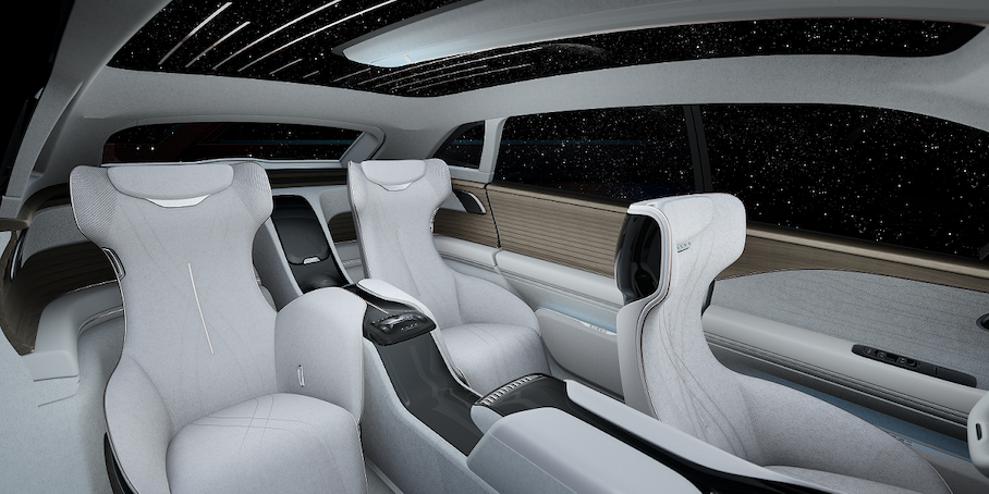 Экран оснащен функцией персональной адаптации под водителя, который сможет изменять зоны отображения информации во время движения. Еще два дисплея разместили на спинках передних кресел. Причем изображения на экранах будут подстраиваться под высоту глаз задних пассажиров.