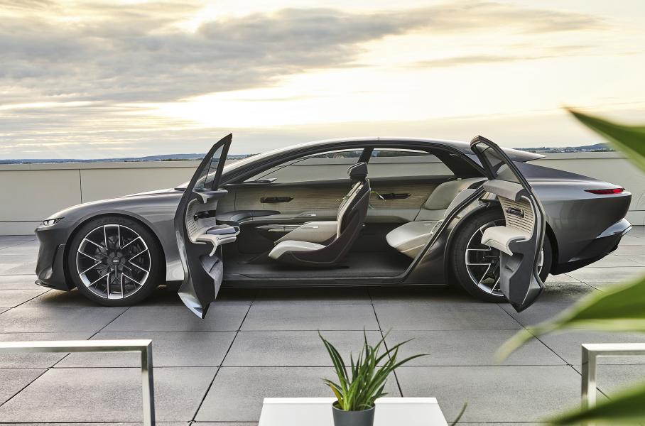 Grandshere крупнее актуального A8 и имеет распашные задние двери, которые вряд ли перекочуют на серийной автомобиль. Не стоит ждать и появления кресел-ковшей со спинками, откидывающимися в пределах 60 градусов, а также складывающиеся руль и приборную панель – эти элементы вряд ли будут реализованы на массовых машинах в ближайший год или два. Зато вполне можно ожидать широкое применение экологичных материалов, в том числе полученных получены путем переработки.