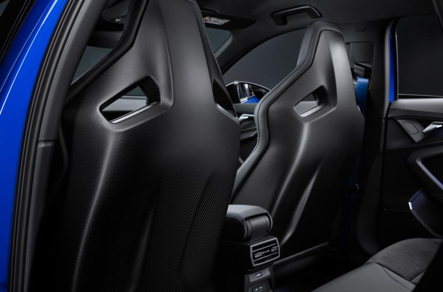 Отличительная черта модели — матричные светодиодные фары, секции ходовых огней которых в движении создают рисунок гоночного клетчатого флага. При отпирании дверей 15 светодиодов с водительской стороны образуют последовательность цифр «3-0-0», при запирании — надпись «R-S-3». Одновременно на дорогу проецируется хэштег «#RS performance». В салоне — кресла-ковши с комбинированной отделкой микрофиброй Dinamica и кожей «наппа», а также синие ремни безопасности.