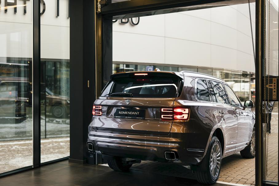 В петербургском шоу-руме, площадь которого составляет 200 квадратных метров, пока представлены два выставочных автомобиля, это седан Senat и внедорожник Komendant. Обе эти модели производятся на заводе в Елабуге, Senat собирают там конца весны 2021 года, а Komendant – с 27 ноября 2022-го.