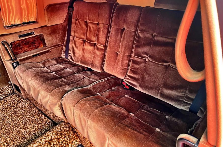 В салоне лимузина сохранилась атмосфера 1980-х. Грубая чёрная кожа огромных кресел, светлое полированное дерево дверных карт и панелей, откидные скамейки, отделанные серым мохером. Стереосистема «Радиотехника», кассетный плеер «Вилма» и аналоговые часы возвращают в эпоху перестройки позднего Советского союза.