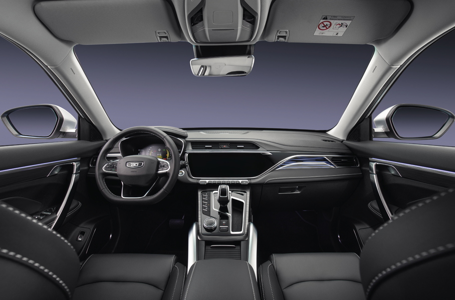 Руль отделан кожей, сиденья — экокожей. На передней панели — цифровая «приборка» диагональю семь дюймов и 12,3-дюймовый экран мультимедийной системы. За звук отвечает аудиосистема с шестью динамиками. Есть подогрев всех сидений, руля, наружных зеркал, форсунок омывателя и лобового стекла в зоне покоя стеклоочистителей.