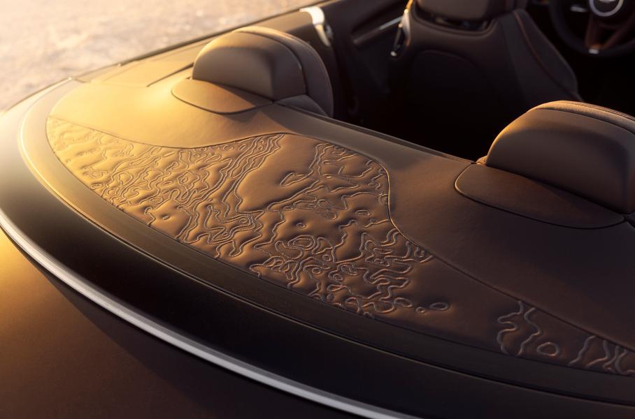 Например, кабриолет цвета Havana оформлен в оттенках земляной палитры. Для обивки его салона использованы два вида кожи — «коньячная» и «опаленный дуб», — а на спинки сидений нанесен топографический рельеф Долины Смерти. Та же самая карта, но уже в 3D, присутствует на ковриках, в то время как переднюю панель украшают вставки Copper Stone и Havana. В свою очередь, Continental GT Speed в цвете Ghost White Pearl навевает мысли о песчаных дюнах, а украшающие его тиснения потребовали более 100 часов работы.