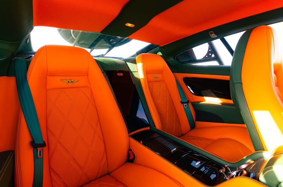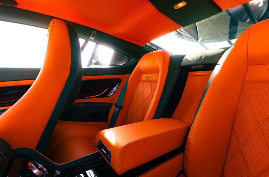 Показатели дорожного просвета не раскрыты, но кастомное купе явно выше обычного. Днище укрыто стальными пластинами, так что риск повредить что-то на бездорожье уменьшается. Четырёхместный салон практически стандартный, если не считать перешив ярко-оранжевой стёганой кожей с зелёными акцентами.