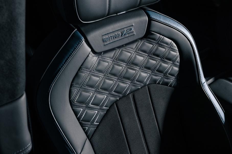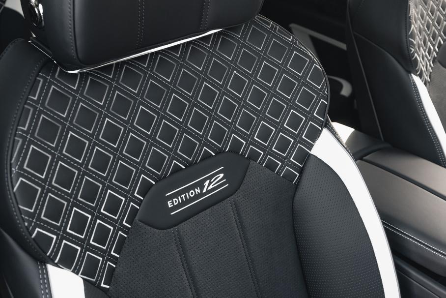 Глянцевый деревянный шпон Grand Black на передней панели — безальтернативен. Сиденья получат окантовку Mulliner Silver, вышитые логотипы Edition 12 и верхнюю часть с вышитым трёхцветным «градиентом» от цвета Anthracite к Porpoise через оттенок Stratos. Рукоятки управления климатической системы получат цифру 12, на передней панели со стороны пассажира появится гравировка с последовательностью работы цилиндров двигателя W12, а дополнят отделку накладки на пороги с подсвеченными логотипами спецверсии.