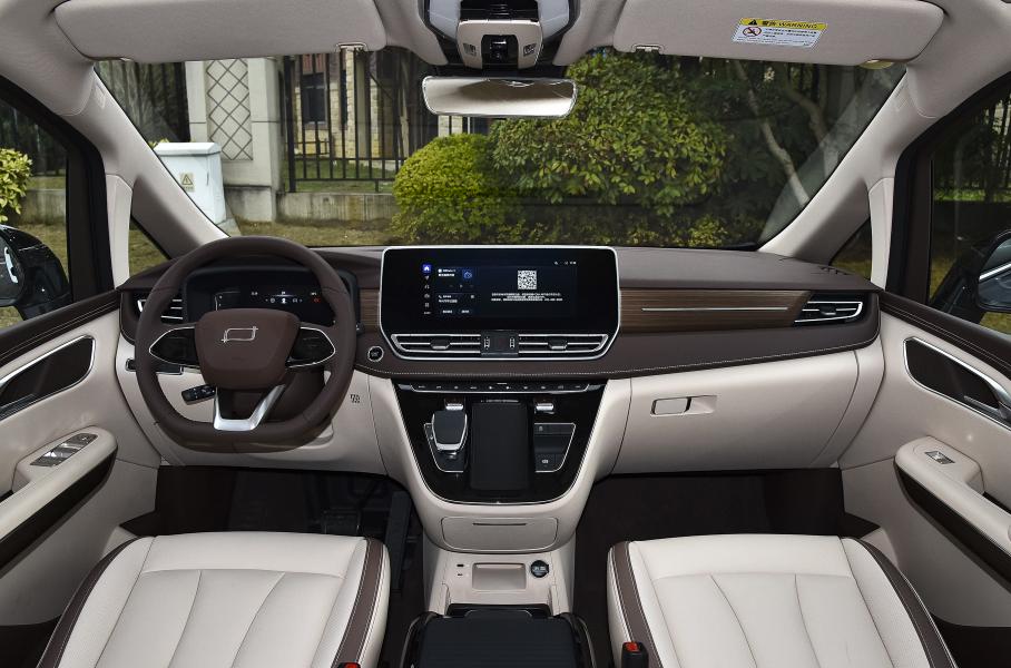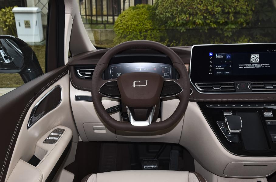Демократичному M9 положены 17-дюймовые колесные диски, экран мультимедийной системы диагональю 12,3 дюйма (у Hongqi HQ9 — 16,2 дюйма), цифровая панель приборов и минимум регулировок сидений, которые, к тому же, в начальных комплектациях механические. Вентиляция и массаж являются опциями, за которые придется доплатить. Третий ряд выполнен в виде дивана со сплошной спинкой, лишенного центрального подлокотника. При этом заявляются панорамная крыша и электропривод сдвижных дверей.