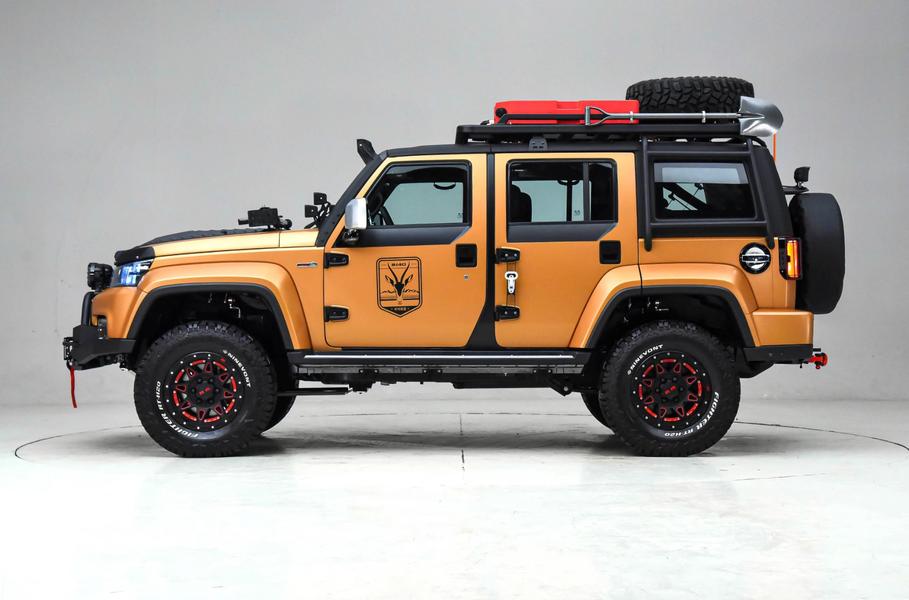 Помимо перечисленного, внедорожнику достались 17-дюймовые колеса с шинами Ninevont Fighter RT-H20, дополнительный топливный бак на 75 литров, набор для кемпинга, включающий емкость под воду, и 220-вольтовая розетка (стандартное оснащение исходного BJ40 Ring Tower Champion Edition).