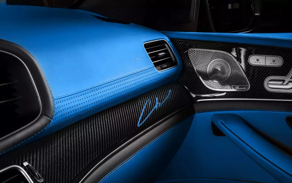 Интерьер также украшен прострочкой синими нитками и перфорацией кожи. Наконец, ателье добавило собственные эмблемы на подголовники, центральный подлокотник и приборную панель. В комплекте с автомобилем владельцам предоставляют гарантию на проделанную работу, а также сертификат аутентичности.