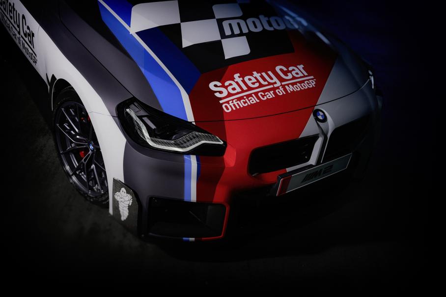 Технически BMW M2 для MotoGP не отличается от базового купе. Напомним, двухдверка получила 6-цилиндровый двигатель — турбомотор выдает 460 лошадиных сил и соответствует агрегату более крупных BMW M3 и BMW M4. Двигатель сочетается с 8-ступенчатой автоматической коробкой передач, привод — задний.