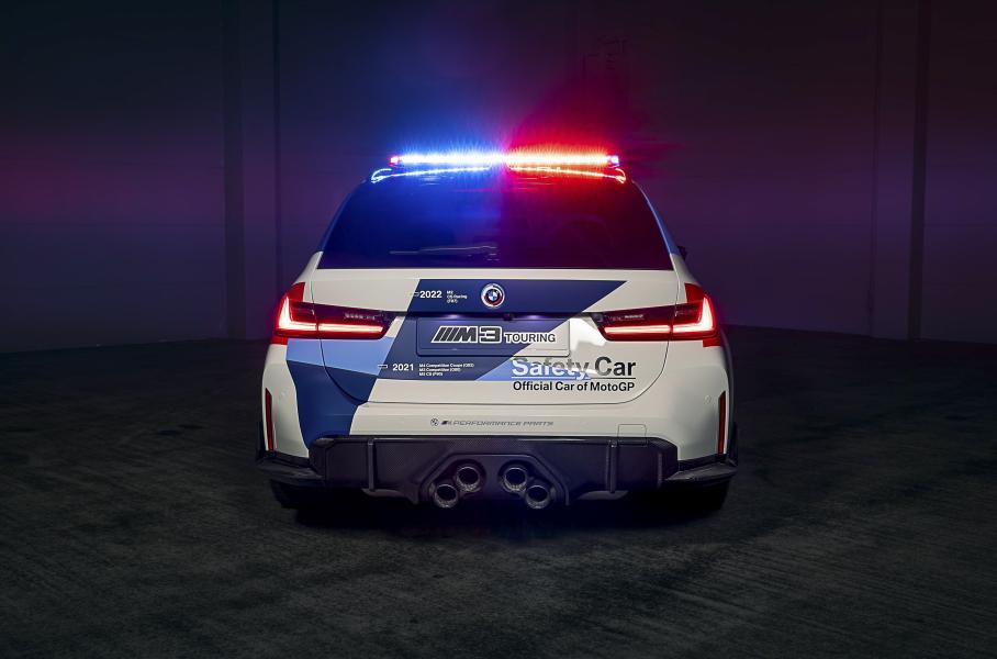 Теперь же машиной безопасности в чемпионате MotoGP выступит M3 Touring, который получил ряд аксессуаров из каталога M Performance. В их числе сплиттер из карбона, канарды по обе стороны переднего бампера, иная выпускная система с четырьмя патрубками, расположенными по центру, и диффузор. Салон на официальных фотографиях не показали, однако заявлены гоночные кресла-ковши Recaro с четырехточечными ремнями безопасности.